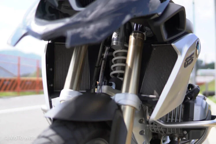 BMWのバイクは電子制御に優れています。特筆すべきはサスペンションで、R1200GSに限らず、伸び側のダンピング調整、プリロード調整、ばね定数と「硬さ」の調整も行う電子制御のバネが走りの快適さと楽しさをもたらします。