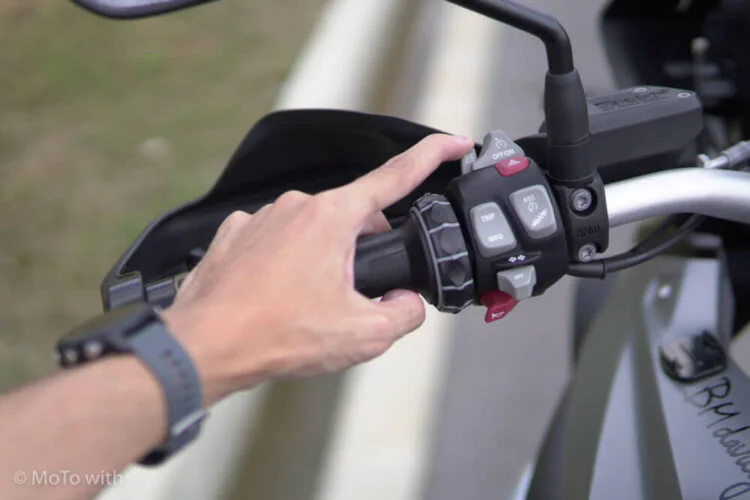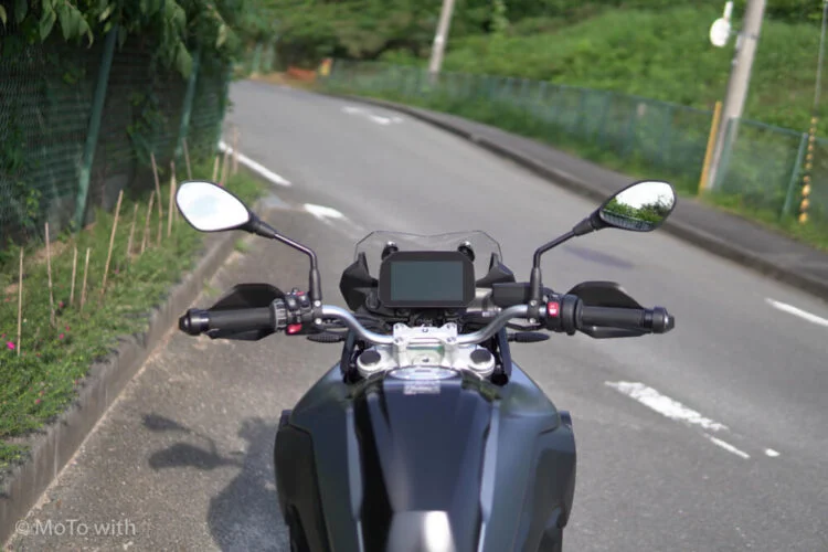 色々な操作を手元のスイッチで操作できるのは便利で、特に左ハンドルにあるトリガーは地図の拡大や縮小、バイクのインフォメーション(燃費やエンジン温度)などを確認するのに便利なスイッチです。