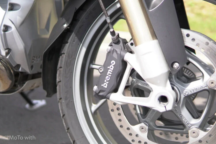 ブレーキはブレンボをラジアルマウントで装備しています。この方式は製造コストが高くなりますが、剛性高のメリットがあります。