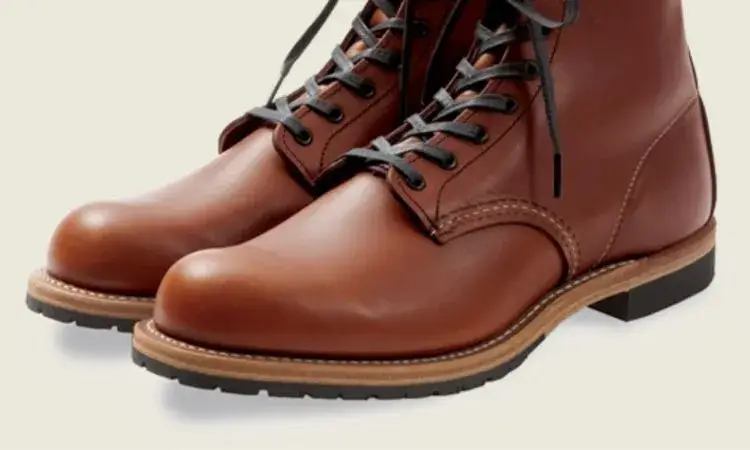 レッド・ウィング社を創業したチャールズ・ベックマンにちなんで名付けられた「ベックマンブーツ」は、社の創業期より存在した6インチ丈ラウンドトゥのブーツをベースにしたモデルです。くるぶしをカカト側から柔らかく包み込む一枚革とし、足当りが柔らかで軽快なつくりで、グリップの良い樹脂製の半張りのソールを用いたモデルです。